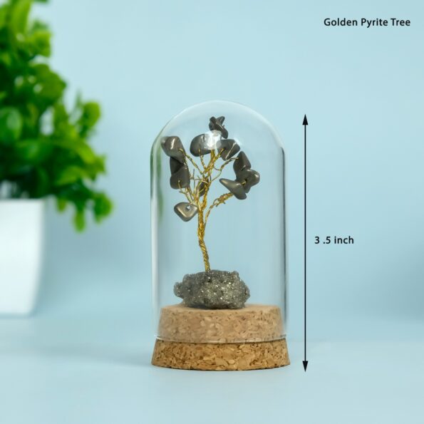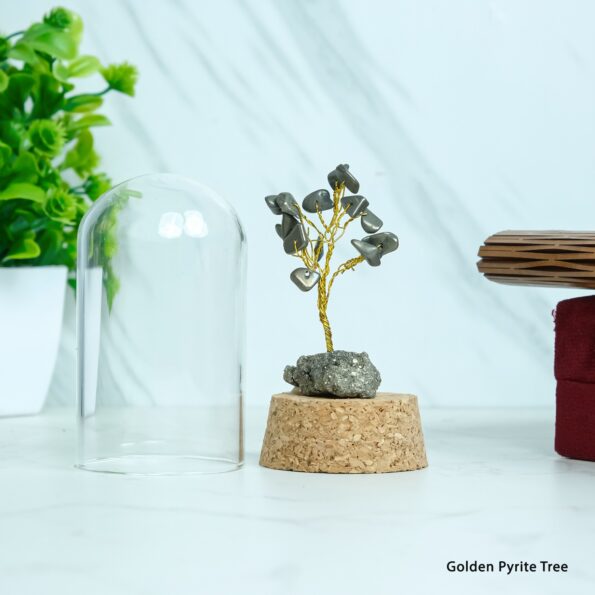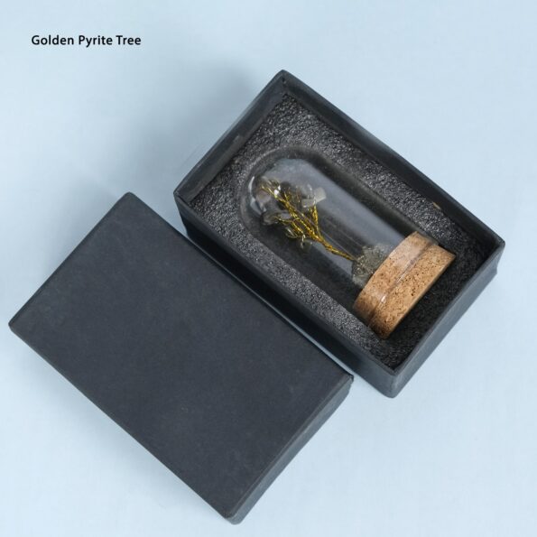 The uniqueness of this is that each tree is fitted in a small natural pyrite cluster and the entire tree is in a small glass casing which is perfect for gifting or keeping at your own place.